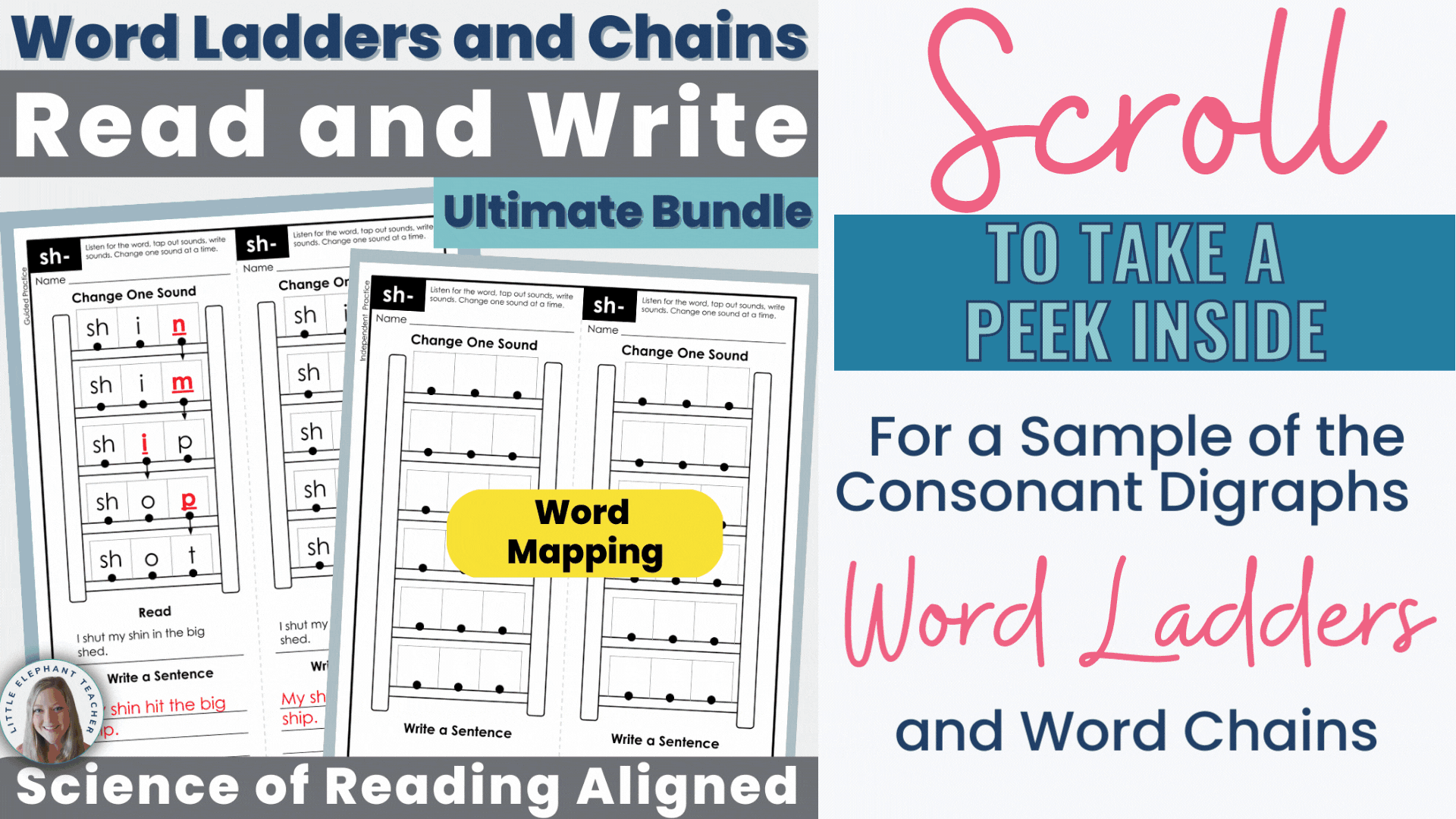 Phonics Word Ladders and Word Chains are a great way to support literacy development for struggling readers! These resources help provide an engaging, hands-on approach to teaching phonemic awareness, phonics, and vocabulary. Help students connect Sounds to text by writing and reading sentences with the provided activities. These word ladders are Science of Reading aligned and include Sound Boxes using a multi-sensory approach that incorporates auditory and visual learning styles. This interactive and fun resource supports literacy learning while increasing student engagement in the classroom. It can also be used as a review or assessment tool to evaluate student progress. Phonics Word Ladders and Word Chains provide students with an easy way to learn how to read words and build language skills in a meaningful way!